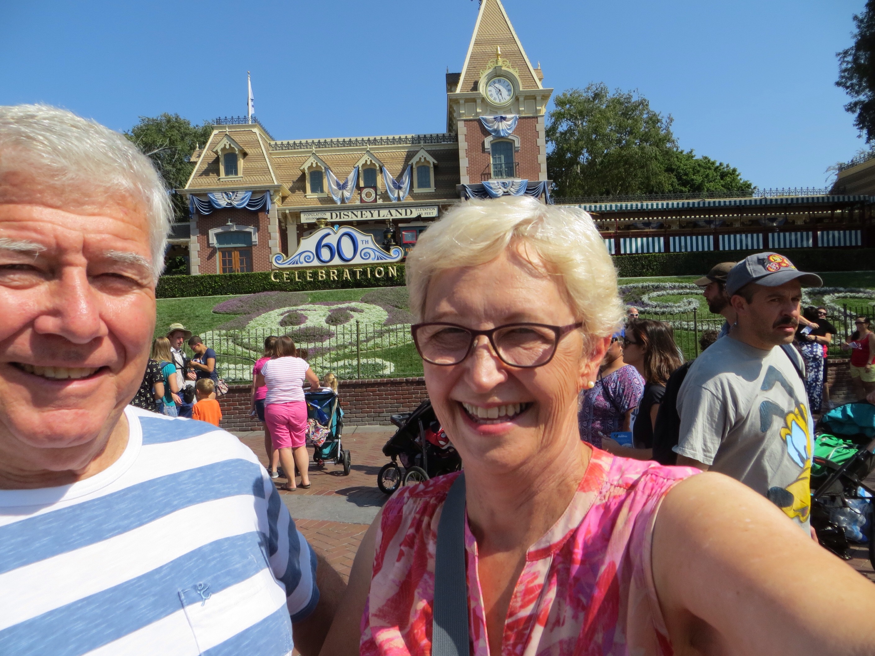 Last stop – Disneyland. Can you belieeeeve it? This was at my request and the boss agreed (although he is probably regretting it!) We arrive back in LA on a hot afternoon and straight to Howard Johnsons just down the road from where Mickey and Goofy and friends live and, by the look of the temperature gauge, it is just as well we put the shorts and t-shirts on the top of the case! It is a warm 33 degrees as we set off after breakfast to be kids for 2 days in the land of fantasy. The littlies have emailed us to tell us what their favourite rides were last year and I can see that every bone in our bodies is going to be rattled as we hold on for dear life on rides which scream around in the dark and in the light and where Star Wars Chewbaccas are using every tool in their armery to awaken us!! We ride Big Thunder Mountain Railroad, Splash Mountain (where we were more than splashed), the Matterhorn Bobsleds, Pirates of the Caribbean, the tameness of Finding Nemo Submarine and It’s a Small World, Hyperspace Mountain, Star Tours, Astro Orbitor, Buzz Lightyear Astro Blasters and then it’s over to California Adventure Park to do Mater’s Junkyard Jamboree, Luigi’s Rollicking Roadsters, Radiator Springs Racers, the Grizzly River Run on rafts and the amazing Soarin Around the World which we line up for twice. The first day we managed to do 10 hours of all this excitement staying to watch the Paint the World light parade and fireworks before hobbling back to the hotel and fallin’ into bed and sleeping like babies!! Next morning we were back there to finish off the list the kids had sent us. We then hobbled back again to have a swim and shower and even fell asleep on the loungers at the pool before the shuttle came to collect us. We are just hopin now that we don’t need to go to the physiotherapist next week to sort out our bones that have probably come out of alignment with all this shaking and turning (and screamin!!). So the journey is over and what an amazing one it was.